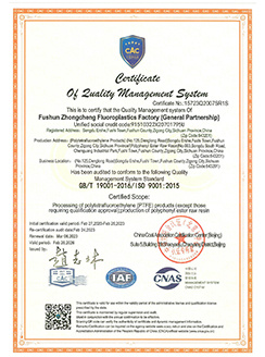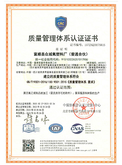 自2003年众城便成为中国氟塑料加工协会会员单位,通过了ISO9001:2000(2008)国际质量管理体系认