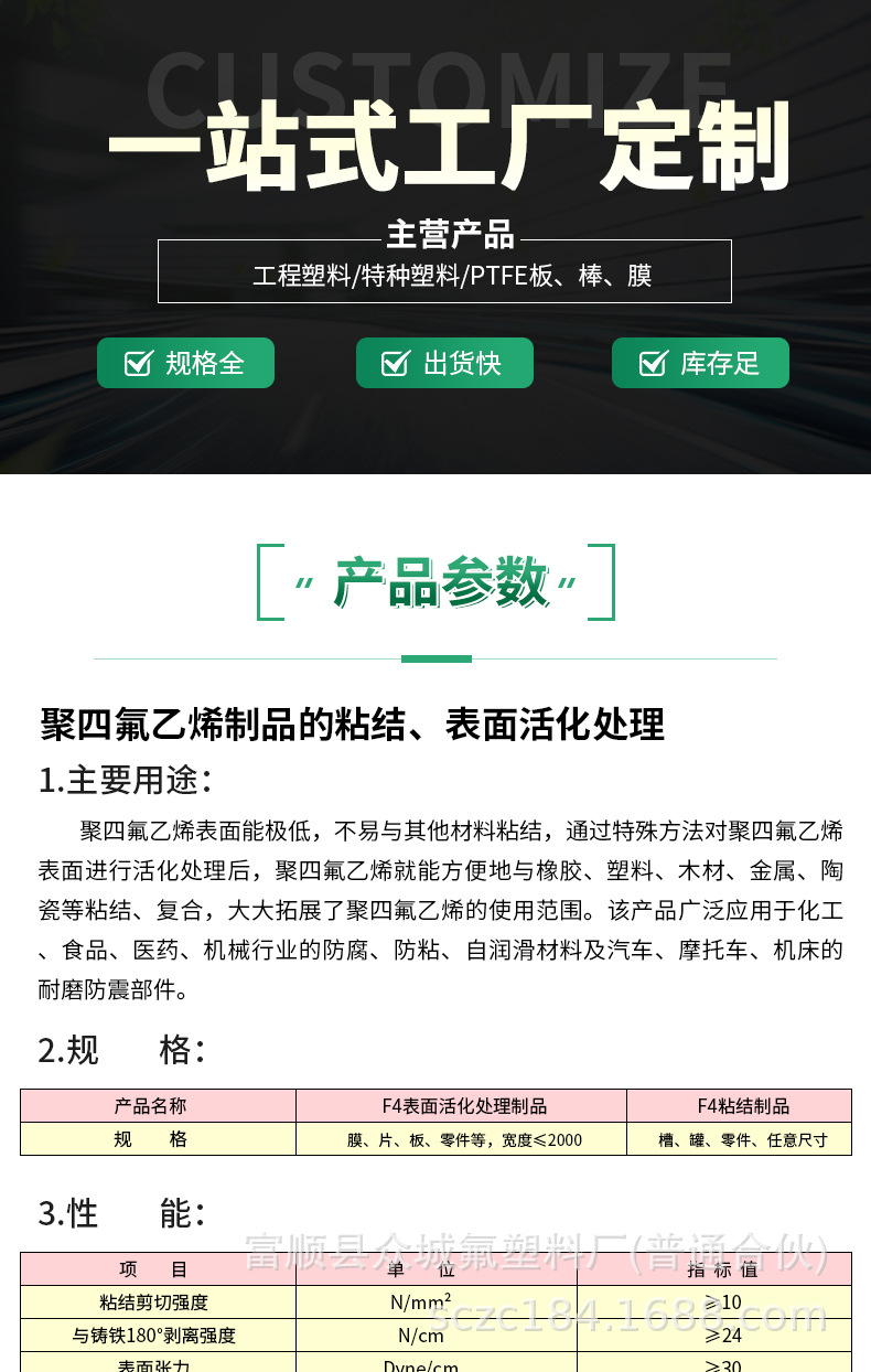型号3聚四氟乙烯制品的粘结、表面活化处理